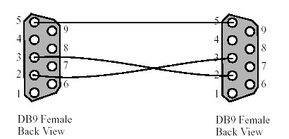5 同士と、2 と 3 を交差してつないだ NULL modem 線を使います。