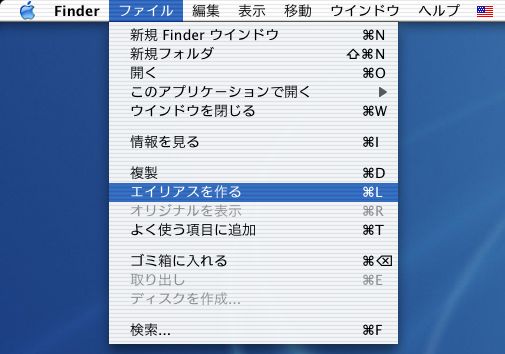 Windows の ショートカットに相当するのは MacOS ではエイリアスと呼ばれる。 これを作る方法は四通りある。
