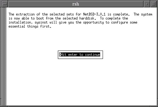 (選択した)全ての取出しが完了しました。 これで disk からの起動が可能となっています。 ここで、 最後に最低限の設定が可能です。 改行を入力して続行して下さい。